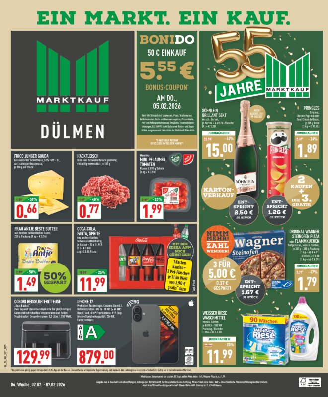Unser JubiläumsBoniDo 🎉Wir feiern 55 Jahre Marktkauf.🥳 Wir schenken Dir am 05.02.2026 einen 5,55€ Bonus-Coupon…» Mehr erfahren